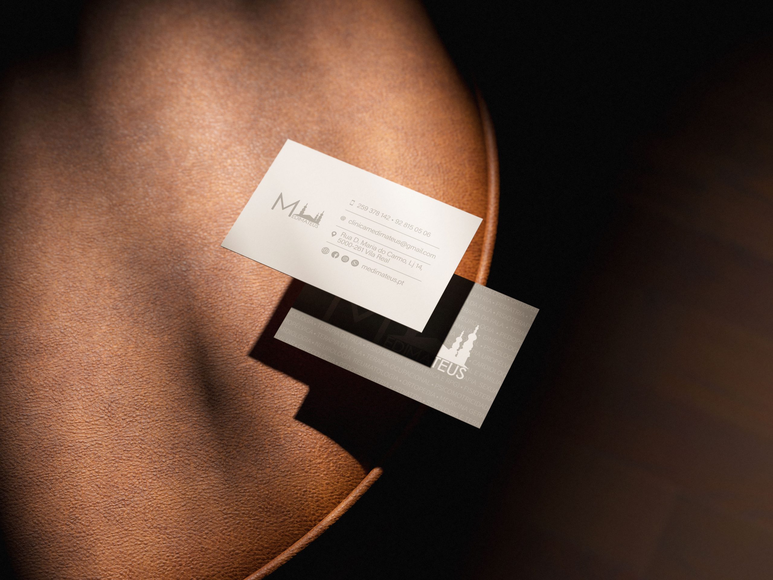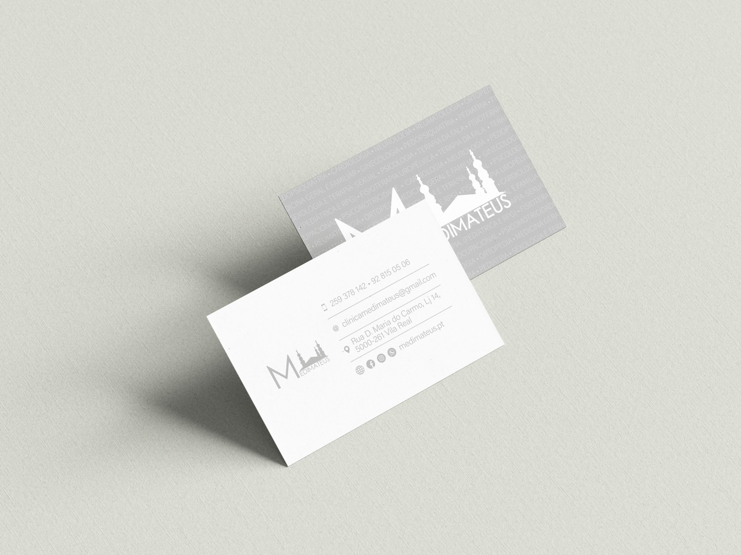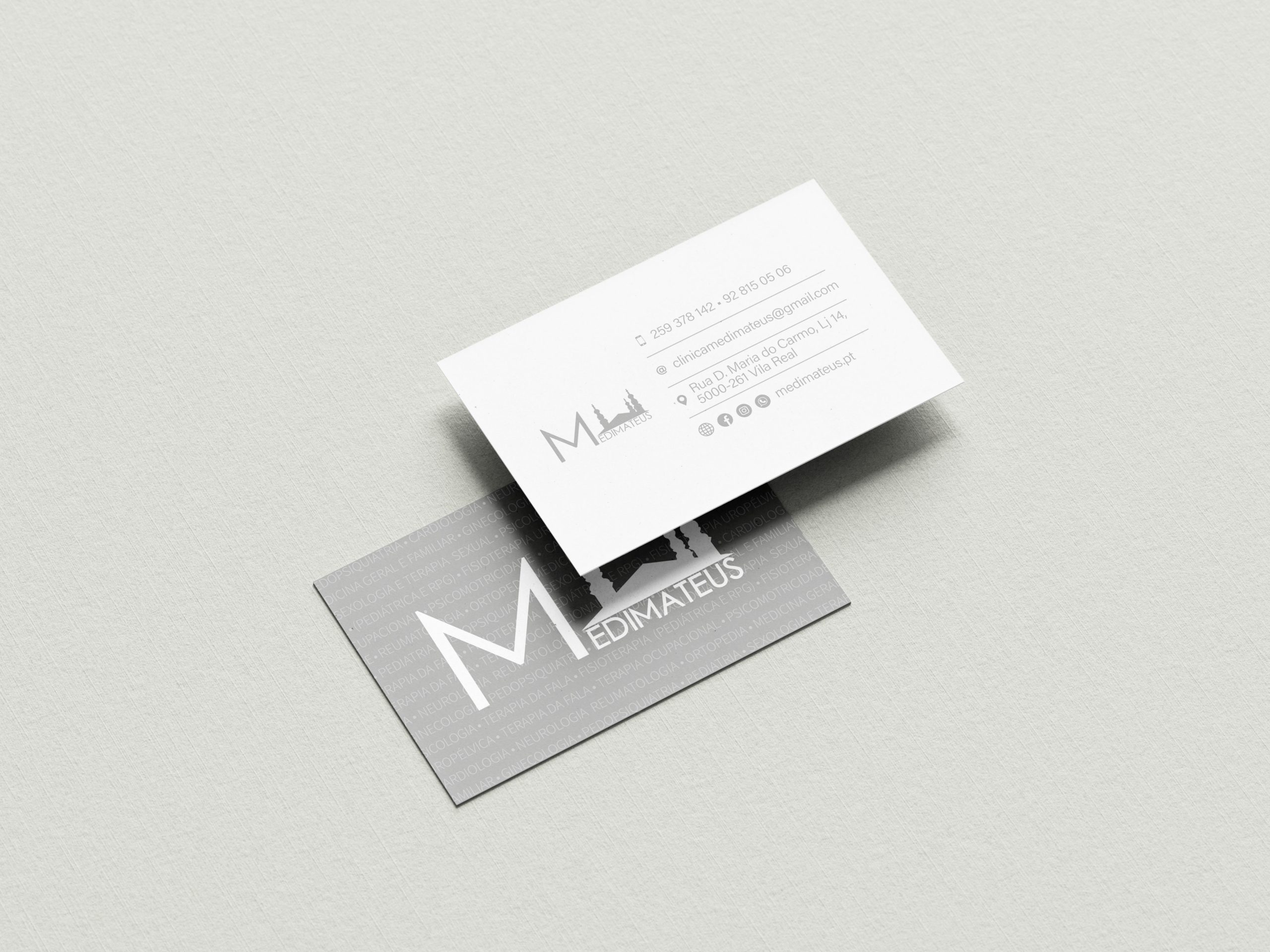 Desenvolvimento do cartão de visita para a clínica MediMateus, com uma imagem simples, profissional e alinhada com a identidade visual da marca.